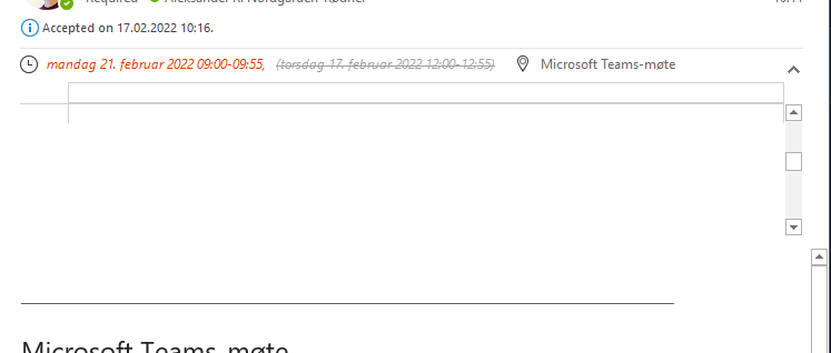 A little while back, I had an issue with Outlook not properly displaying the calendar in meeting invitations. It looked like this (which I’m sure you’ll agree is less than helpful):